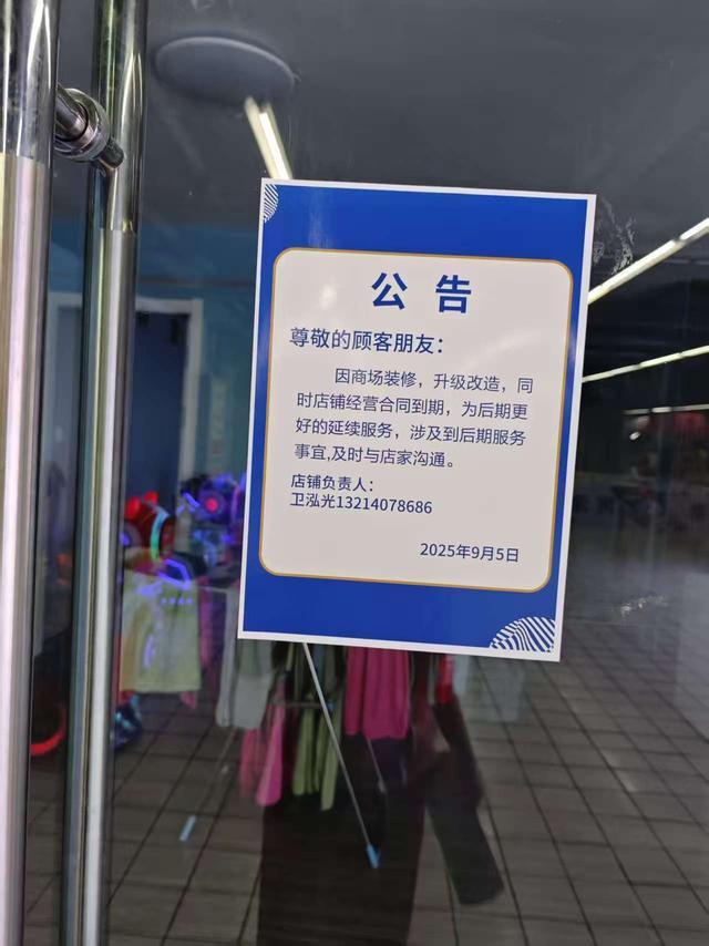 刁女士气愤地说,前不久,她再次来到这家美容馆,发现大门上张贴了一纸公告,上面写着:“因商场装修升级改造,同时店铺经营合同到期,为后期更好地延续服务,涉及后期服务事宜,请及时与店家联系。”公告上留有店家负责人的电话,她这些天多次拨打始终无人接听,无奈之下向华商报大风新闻求助。
