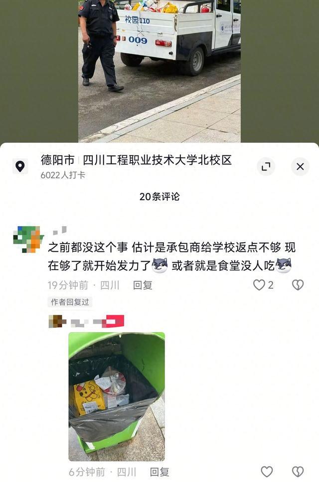 此前报道:高校保安为啥把学生外卖扔进垃圾箱?德阳涉事校方:骑手未依规存放外卖柜,曾出现食品变质问题