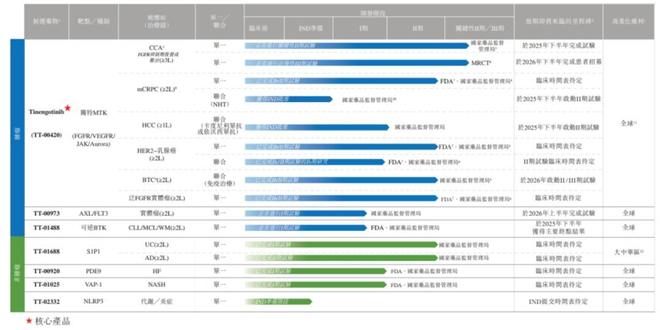 非肿瘤管线中,TT-01688(选择性S1P1调节剂)调控淋巴细胞迁移抗炎,计划于2025年第四季度启动针对特应性皮炎的III期试验;TT-01025(不可逆 VAP-1抑制剂)拟治非酒精性脂肪性肝炎(NASH),已完成I期临床,填补该领域口服药物空白;TT-00920(PDE9抑制剂)针对慢性心力衰竭,处临床早期。
