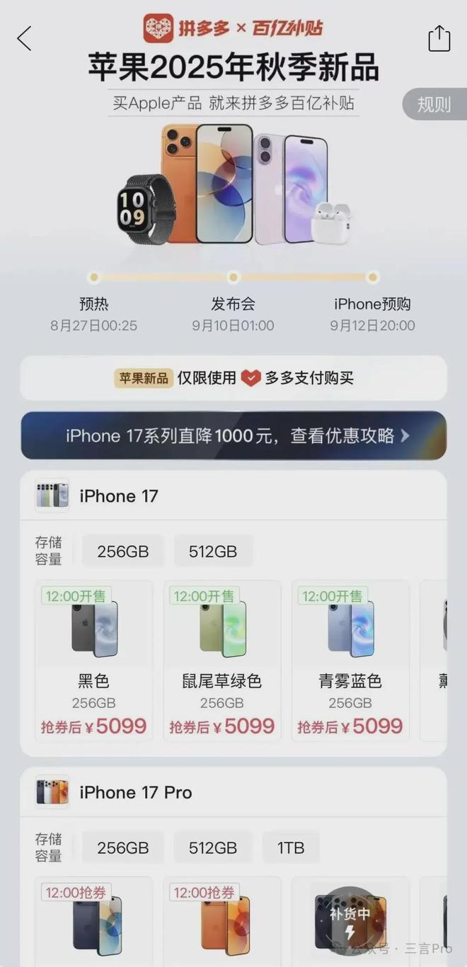 简单总结下,今年苹果iPhone17系列确实很火爆,加上各种补贴活动,标准版是销量机型,主攻电商渠道。而线下备货主要是Pro和PM机型。iPhone air线下还未有展示机。