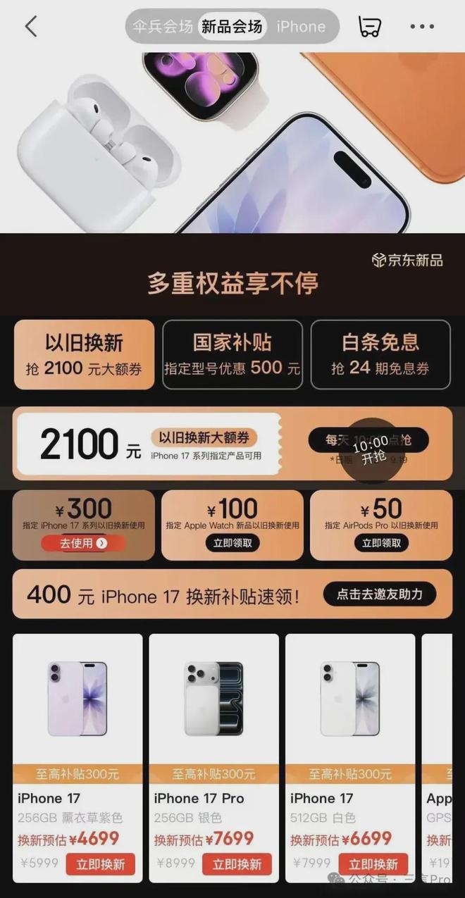 京东推出以旧换新大额优惠券,有机会抢到2100元大额券。重要的是支持国家补贴500元,但只有部分地区可用,北京就不能使用。还有12期免息,能抢24期免息券。
