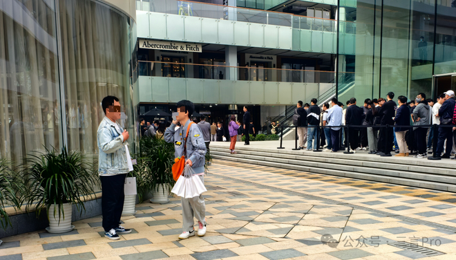 因为人太多,所以苹果门店实行了限流,出来几个人,再放进去几个人。