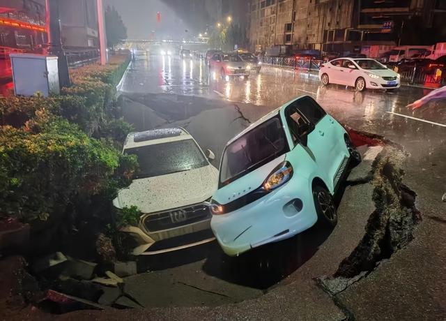 洛阳路面塌陷致两车坠落,多部门紧急处置