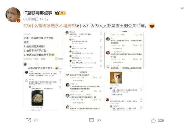 同时,平日里一点一滴积累起来的情感连接,关键时刻会成为品牌最可靠的“防火墙”——在#为什么蜜雪冰城永不塌房#的话题里,有很多真情实感的正面评论。这正是长期真诚沟通换来的信任果实。