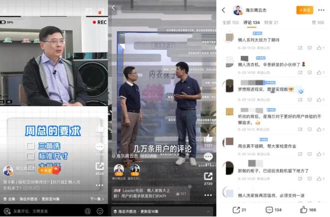 此前海尔集团董事局主席、首席执行官周云杰在微博上看到用户抱怨“租房住摆不下两台洗衣机,内衣外衣混洗总觉得不卫生,洗袜子也费劲”,随即便推动团队整理几万名用户的需求和核心痛点,最终推出可分区洗涤的“三桶洗衣机”。“因为你的一个提议,世界500强为你改了方案。”企业家这样做所带来的品牌好感度、用户归属感和市场口碑,已远超任何传统广告。