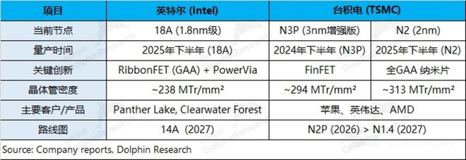 而对外代工进展上,并未得到市场信任,公司寄希望能在 18A 节点实现突破。从晶体管密度看,18A 仍明显低于台积电的 N3P,当然市场本身也接受它的落后。