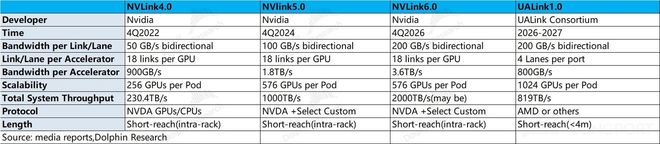 英伟达的话,虽然是主参与方,但对它本身业绩不会有很大提振,更多是未来更广市场业务开展的想象力。另一方面看,此次合作有助于英伟达推广 NVlink 生态,作为 CUDA 之外的第二护城河。UAlink 在设备环节的主要三巨头(AMD/intel/博通)中,英特尔这把被英伟达拉走了。