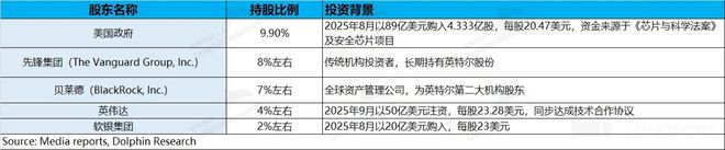 这样一轮融资操作下来,重新梳理当前英特尔的股权结构,可以看出:原有的先锋集团和贝莱德更多的是财务投资的形式,英特尔没有控股股东,但单一大股东已经已经成为美国政府。换句话说,英特尔已经成为美国国企。