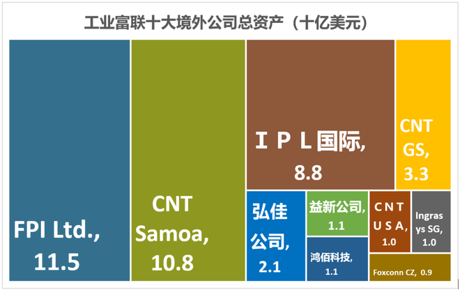 根据2018年5月发布的《招股说明书》(P102-P104),截至2017年末,工业富联境外子公司总资产超过400亿美元。