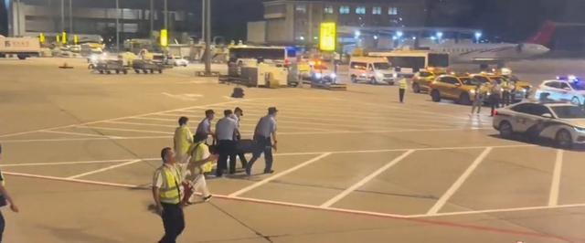 男子登机前绕飞机跑遭警方控制,涉及其他案件被抬走