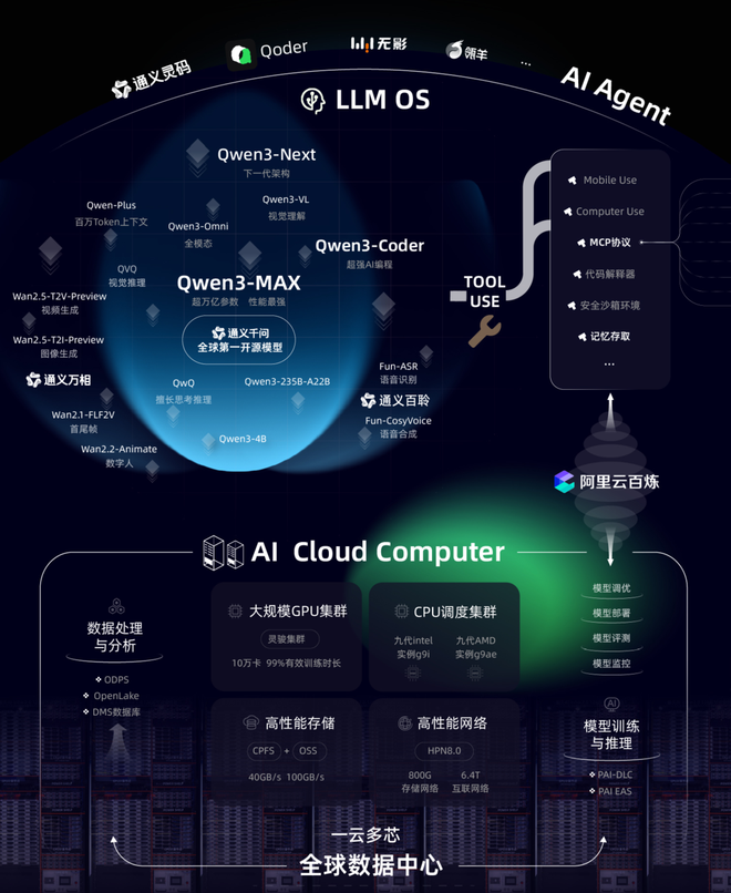 笔者总结一下,吴泳铭的意思是,ASI可以实现,阿里目前进化到第二阶段了。在整个ASI实现的过程之中,AI对于人类社会的重要性不断升高,甚至可以成为新的“能源生态位”,而在如此重要的AI窗口里,大模型和云将像三十年前“个人PC和桌面系统”一样成为“人手一个的基础工具”。而阿里云将会继续发力大模型和AI云两个关键方向。