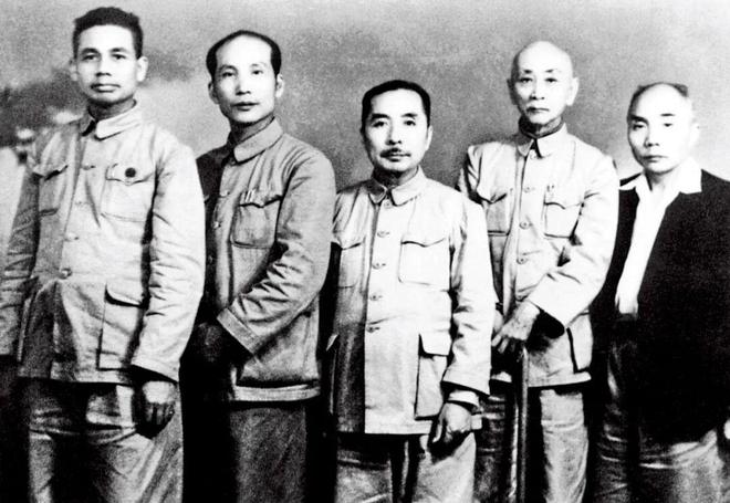 参加中国人民政治协商会议第一届全体会议的致公党代表合影。自左至右:雷荣珂、黄鼎臣、陈其尤、官文森、严希纯。
