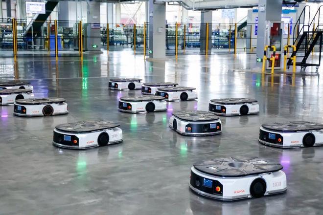 例如,注塑车间物流一共有81台AMR小车(自主移动机器人),此前多基于激光SLAM或者是二维码导航,现在也融合了AI相关技术,在物流智能体的指挥下,具备跨域调度、动态路径感知、灵活换路、行人识别、自主绕障等能力,就像一台台公路上的汽车,在红绿灯、交通标志、交警的引导下可以快速高效将车间物料搬运到位,且不会产生任何的拥堵等车。