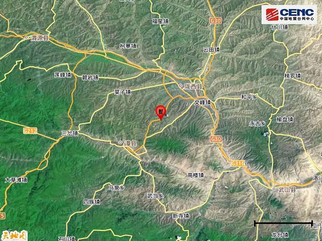 6时28分在甘肃定西市漳县发生4.3级地震,震源深度13公里,震中位于北纬34.87度,东经104.55度。