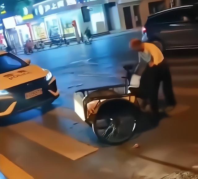 9月28日,有湖南网友发视频称,当晚有一老年男子在路口推着三轮车阻拦警车。