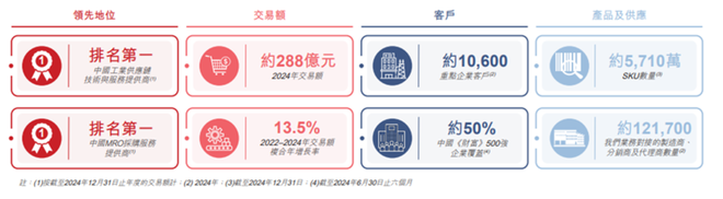 据招股书披露,京东工业当前是中国MRO采购服务市场的最大参与者。按2024年的交易额计,京东工业规模为第二名的近三倍。同时京东工业也是中国工业供应链技术与服务市场最大的服务提供商。