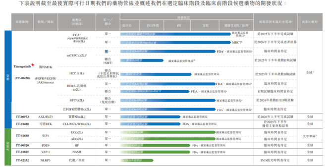 肿瘤管线产品有2款:TT-00973是一种高效AXL/FLT3抑制剂,AXL激酶正是癌症存活、转移及耐药性的关键因素。T-01488是一种非共价可逆BTK抑制剂,可克服多种复发性或难治性血液恶性肿瘤。
