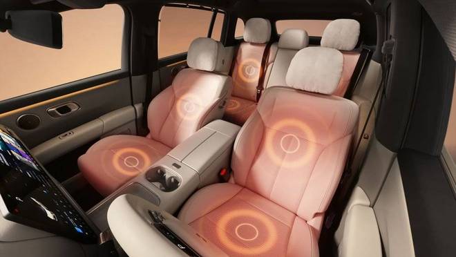 外观个性化,舱内空间则是强调舒适感。通过低重心和短前后悬设计,理想i6打造了超过 3.3 米超大车内纵向可用空间,标配四座通风、五座加热和前排十点按摩,后排右侧配备皇后座椅,搭配8.8升智能冷暖双用冰箱、21.4英寸3K后舱娱乐屏、铂金音响、侧窗隐私帘等配置,打造了一个舒适驾乘空间。