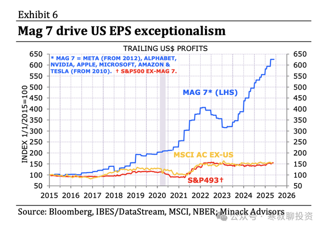 2008年后,上证指数能跑赢标普指数的比例为个位数,且时间越来越短。一个很重要的原因是,美股市值前20基本以科技、消费、医药为主,尤其是“美股科技七姐妹”(英伟达、苹果、特斯拉等)仍在大赚特赚,撑起了美股的高利润。