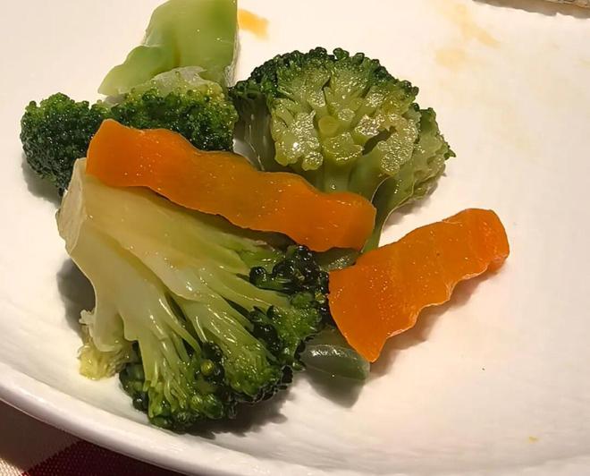 西贝的西兰花服务员明确告知是冻品,品尝起来也确实有些“糯而不脆”的感觉,观感上也不那么翠绿。