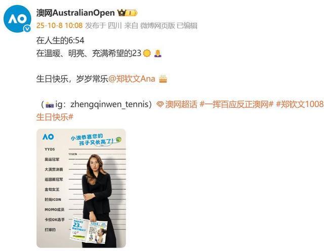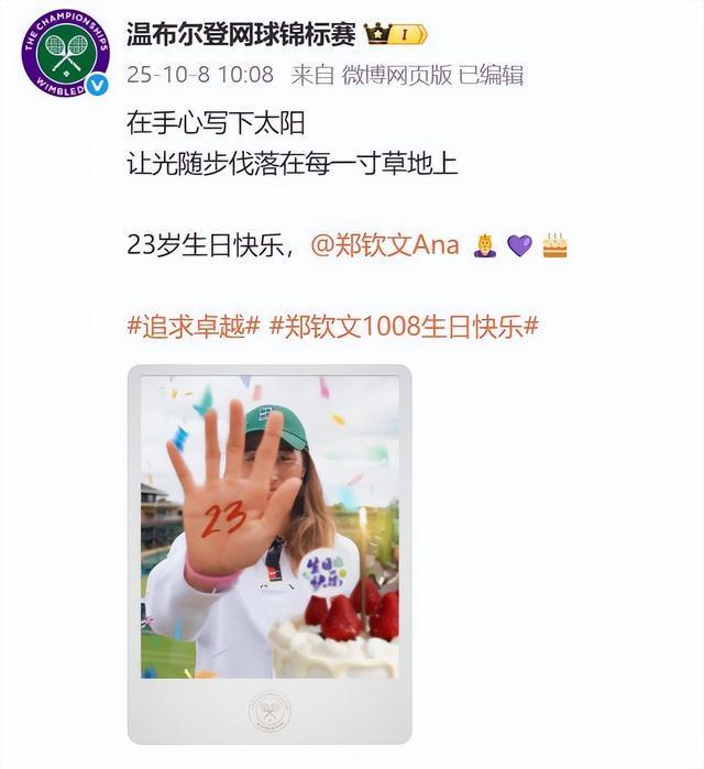 郑钦文四大满贯祝贺23岁生日,牌面展现风采!