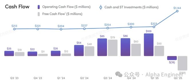 自由现金流转负 :在Q1实现5000万美元的强劲正自由现金流后,Q2自由现金流转为负值。