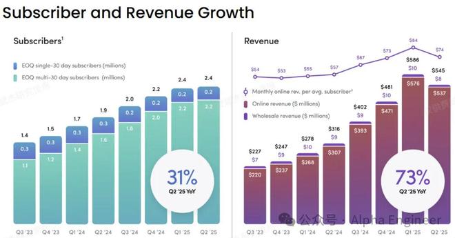 截至 2025 年 Q2 ,平台订阅用户总数达 244 万,其中选择个性化订阅方案的用户为 148 万,占比高达 61% ,同比增长 89% 。