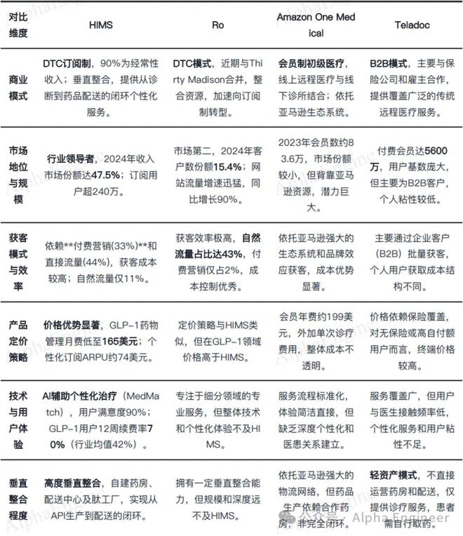 HIMS在远程医疗与复合药房市场凭借其独特的商业模式和垂直整合能力占据领先地位,但仍面临来自Ro、Amazon One Medical及Teladoc等对手的激烈竞争。