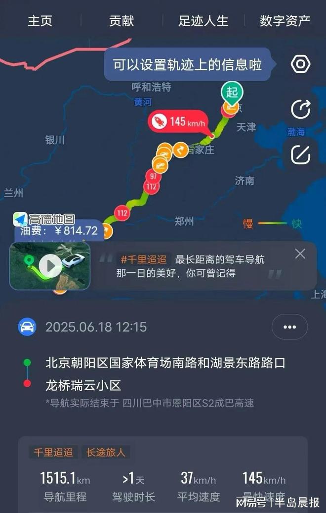 “接到了从成都到北京的单子,就开到北京了。”杨先生告诉记者,6月15日晚上11点,他在成都双流机场到达层正常排队,接到一名30岁左右的女性乘客。这名乘客表示,要去北京。“我当时以为她在开玩笑,查了导航1820公里,报价10600元,对方没有讲价拉门就上车,当场扫码转了钱,就出发了。”