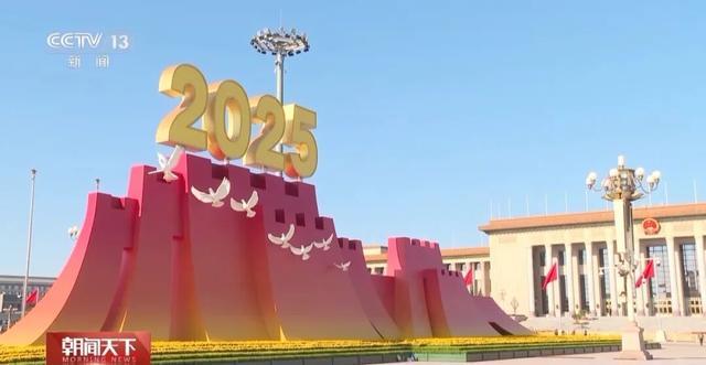 纪念中国人民抗日战争暨世界反法西斯战争胜利80周年大会即将于明天(3日)举行,目前天安门广场核心区布置基本就绪。按照主题鲜明、庄严庄重、简洁安全的原则,活动策划团队在上百个设计方案中反复研讨挑选、细化落实,最终年号台的呈现,让人眼前一亮。