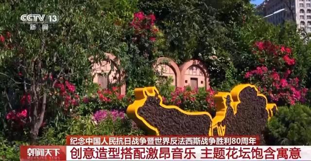 纪念活动期间,北京以“铭记历史、缅怀先烈、珍爱和平、开创未来”为主题,在长安街沿线布置了10组大型立体主题花坛,吸引大批市民游客打卡拍照。