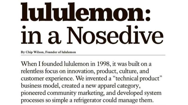 题图|lululemon创始人Chip Wilson公开信截图