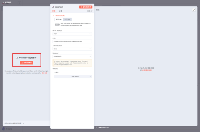 - 关键操作:点击 “Listen for Test Event” 按钮。你会看到它变成了一个等待状态。这个动作,就相当于告诉 n8n:“我准备好了,现在开始竖起耳朵等信号”。