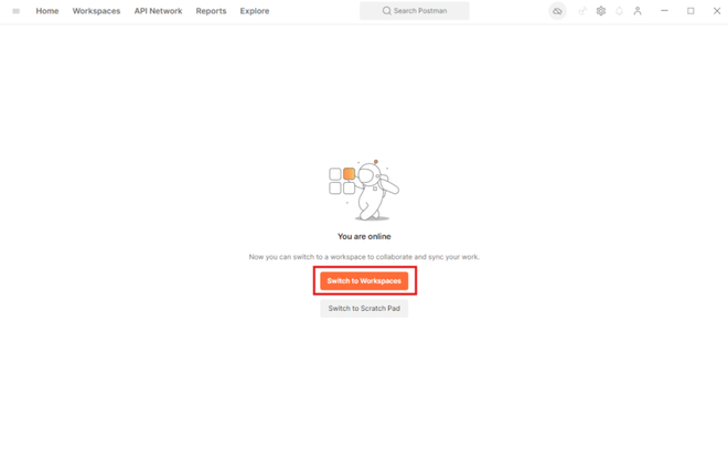 - 关键提醒:如果是第一次打开,请点击橙色的 “Switch to Workspaces” 按钮进入主界面。