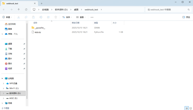 - 在你电脑上创建一个新文件夹(比如 webhook_test),在里面创建一个名为 app.py 的文件。