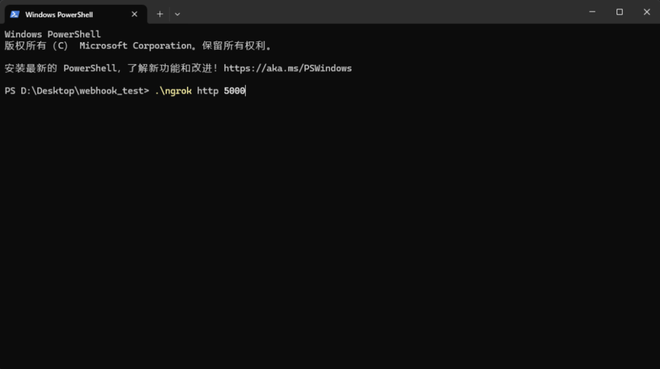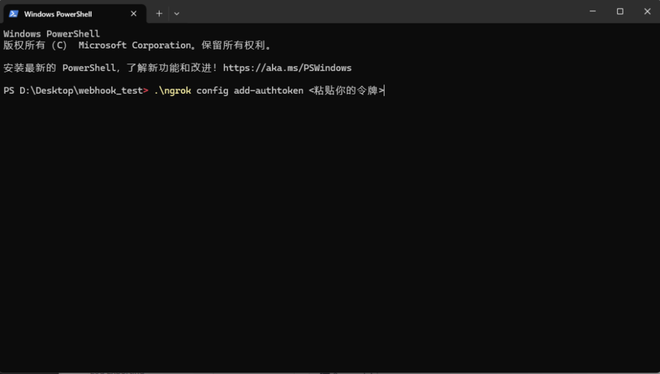 - 进入 webhook_test 文件夹(因为我们把 ngrok.exe 复制进来了)。