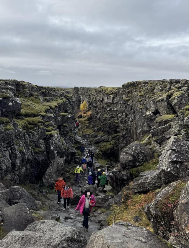 许多中国游客行走在亚欧板块和美洲板块间的裂缝中。图/受访者提供