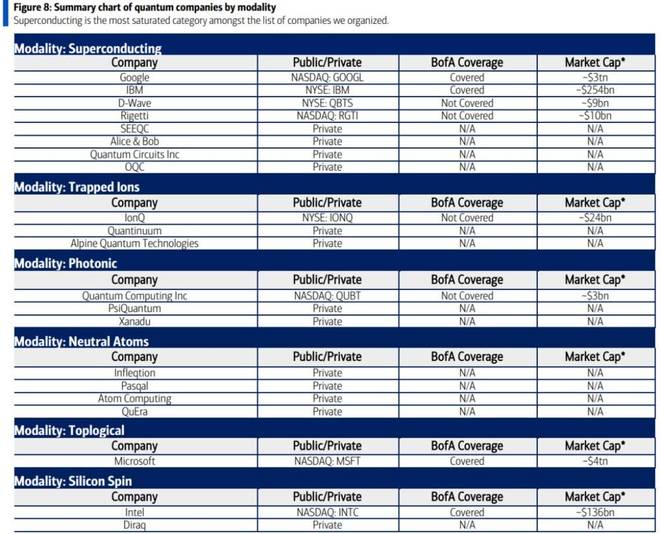 比如PsiQuantum、Quantinuum、Infleqtion、Pasqal、SEEQC、Atom Computing、Alice & Bob、Quantum Circuits、QuEra、Alpine Quantum Technologies、Xanadu、OQC和Diraq。