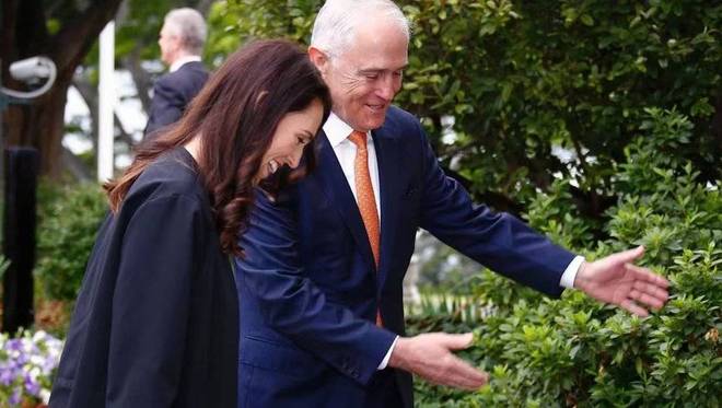 阿德恩向澳大利亚总理及其妻子露西赠送了新西兰品牌鞋Allbirds,图源:新西兰媒体Stuff