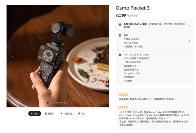 或许也正因如此,部分消费者即便在国庆节期间,也依然没有顾虑地选择原价购入 Osmo Pocket 3。亦有消费者在社交平台的发帖称,购机前线下销售人员并未告知促销信息。