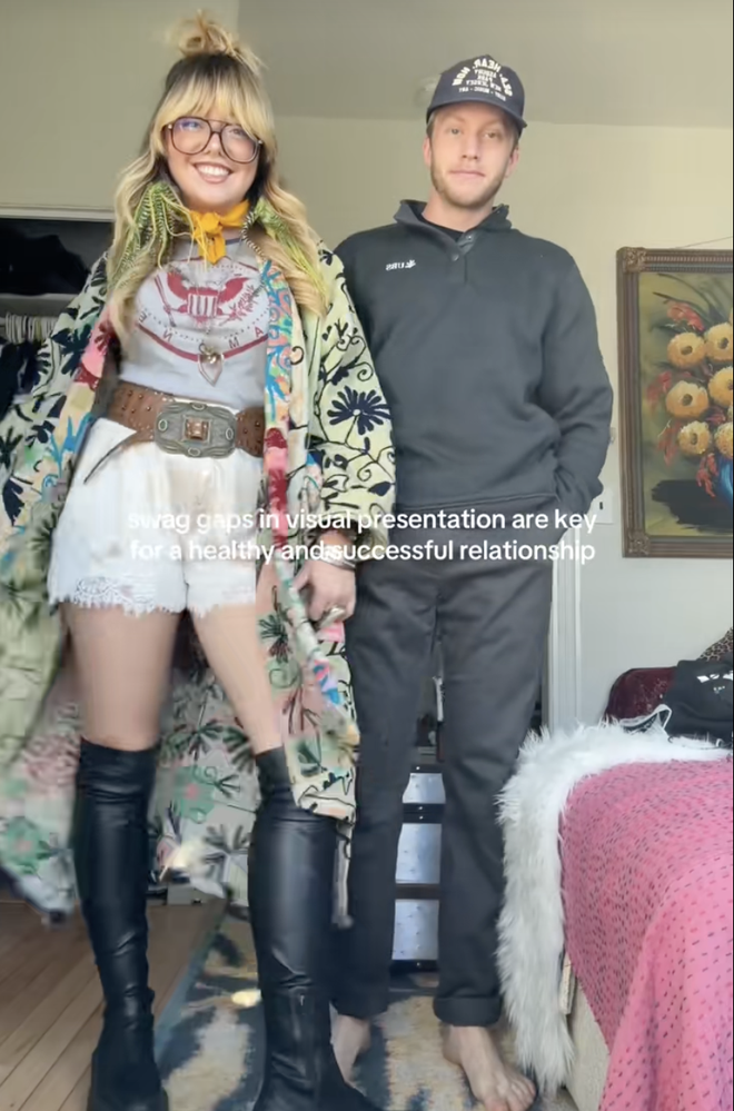 “我才不要那种关系呢,”TikToker @itsalmondmilkhunni在视频里说,“当我打扮得又酷又时髦走在前面时,一想到我对象在后面看起来乱七八糟……真的无法忍受。”