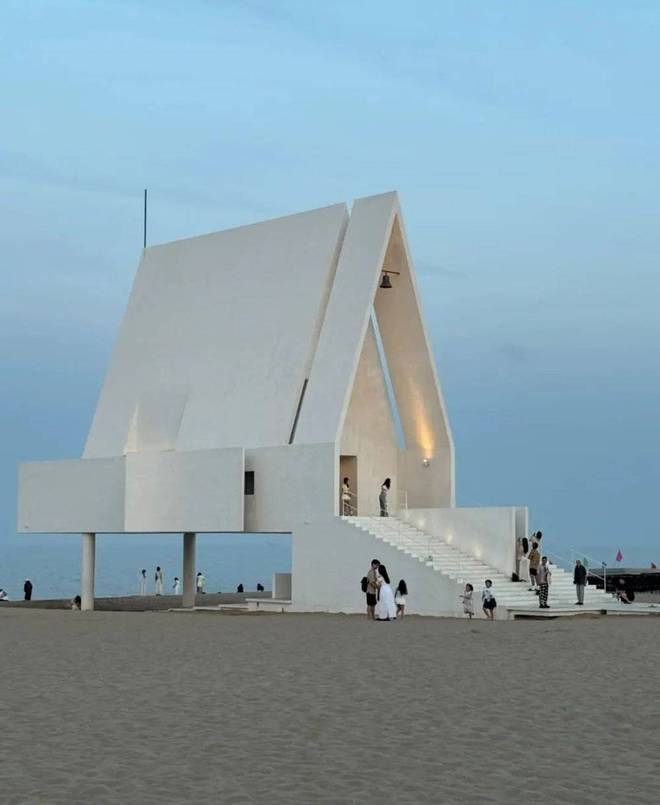在北中国海岸线上,一座纯白建筑孤独矗立,旁边还有一座水泥灰色的图书馆。在他们的面前是铅灰色的海。如果你去过马尔代夫、泰国的苏梅岛或者是三亚,你会觉得这海水和沙滩的质量都一般,但这并不妨碍北京中产对于这块神奇土地的趋之若鹜,在他们的心里,这里有所谓“诗意的栖居”。