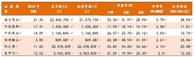 当前海天味业的PE为33.4倍,24年ROE在22%左右,净利润增长率13.75%。其相对中炬高新及千禾味业,仍享有龙头溢价。
