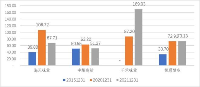 与其说海天味业一枝独秀,不如说是资金抱团消费股下的鸡犬升天。中炬高新、千禾味业一样享有高估值溢价。回头看是过于乐观,但当时市场将短期内的提价+高速增长理解成永续模式。