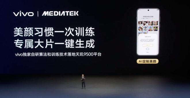 端侧AI应用的爆发,成为高端手机新的看点。天玑9500在NPU上进行了显著加码,设计采用全新“超性能+超能效”双NPU架构,峰值性能相较上一代提升111%。依托天玑9500强大的端侧AI能力,vivo X300系列增加了“Live Photo路人消除”功能,通过自研视频消除大模型,智能、自然地移除背景干扰。二者还联合研发,在X300系列上实现了AI定制人像美颜,让端侧AI从“通用化”迈向“个性化”。