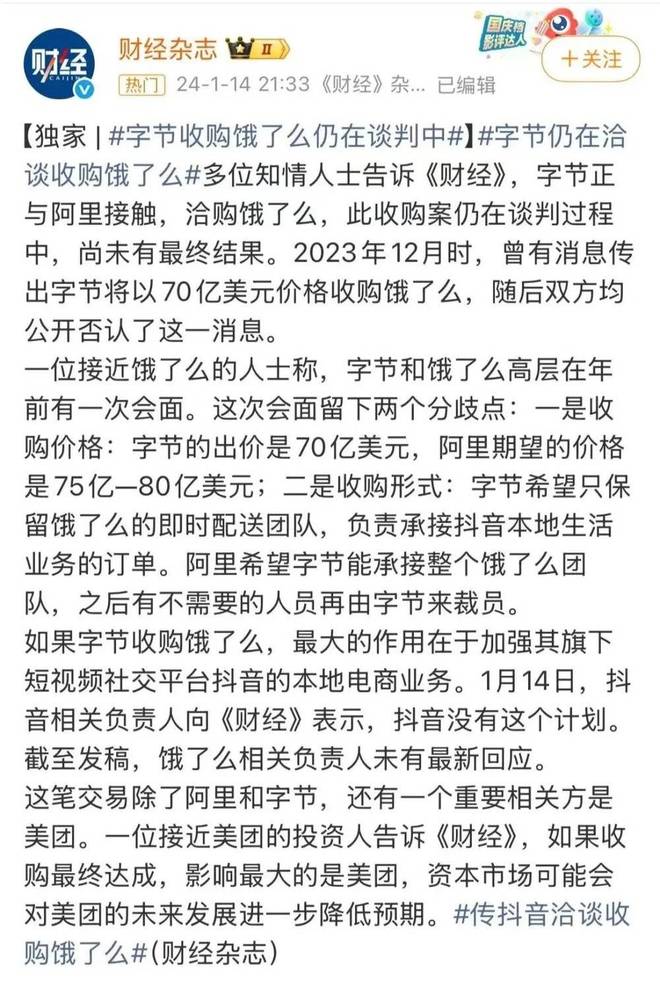 换句话说,饿了么有价值的也只有配送团队了,字节连饿了么的名号都不想要。当然,字节和阿里都对外辟谣这是没有的事儿。