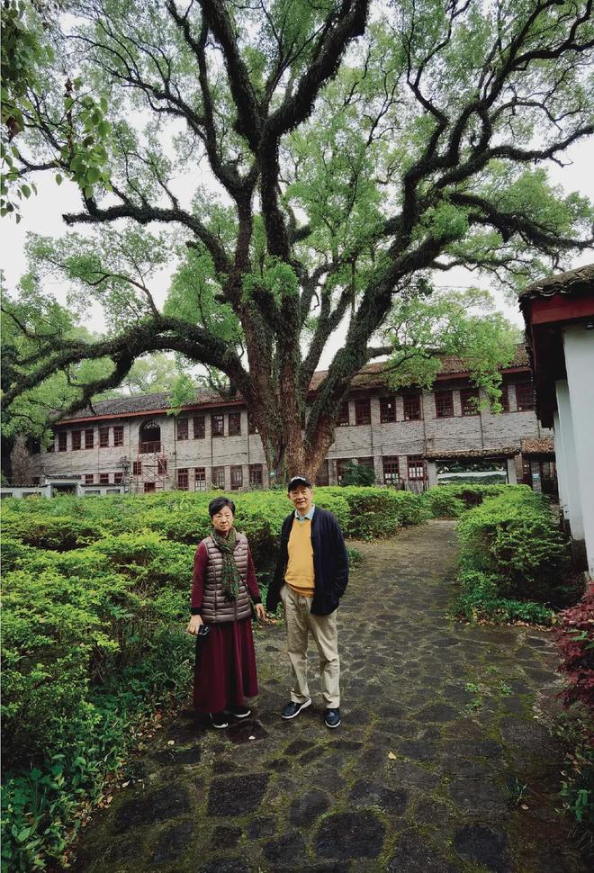 2021年4月,何迪与妻子王苗访问广西大学旧址,摄于桂林雁山园的大榕树下。本文图/受访者提供