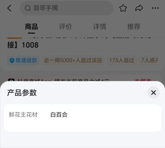 产品参数为“鲜花主花材”“白百合”,与翡翠没直接关系