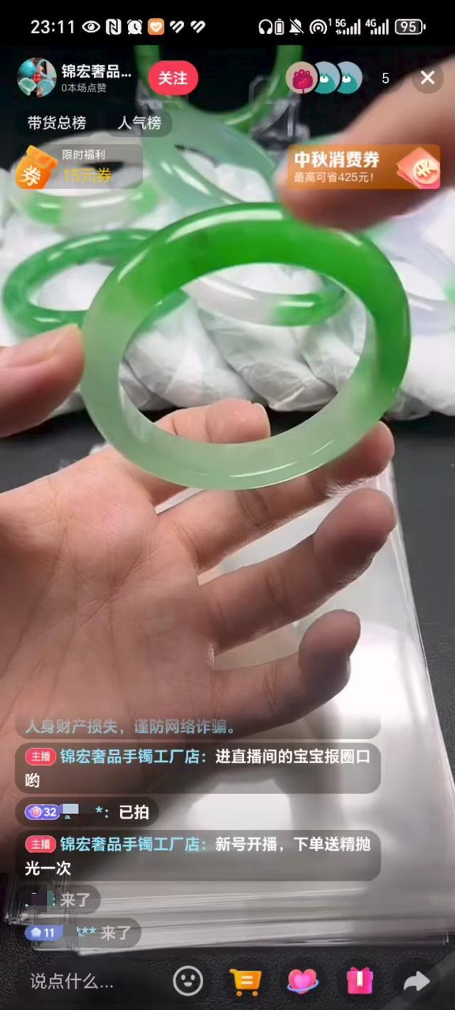 在翡翠直播间中,记者还发现多家店铺以新粉福利、开播福利、低价“捡漏”等话术为宣传点,吸引观众。