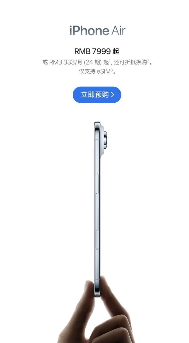 苹果iPhone Air预售火爆,搭载eSIM技术起售价7999元,5分钟售罄